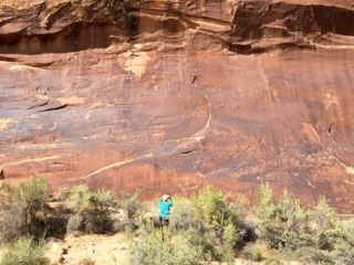 The wall is BIG and extends off to the left and right out of the photo. That's Pam way off, showing the scale of the place. Not visible is a chain link fence that keeps touchy-feeley types, and worse, from getting too close.